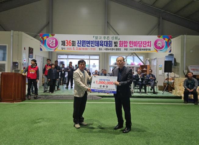 이날 웅양‧신원‧가조‧가북면 면민 체육대회에서 지역 출신 향우들이 고향사랑기부금을 전달하여 면민 화합과 축제의 열기를 더했다.
