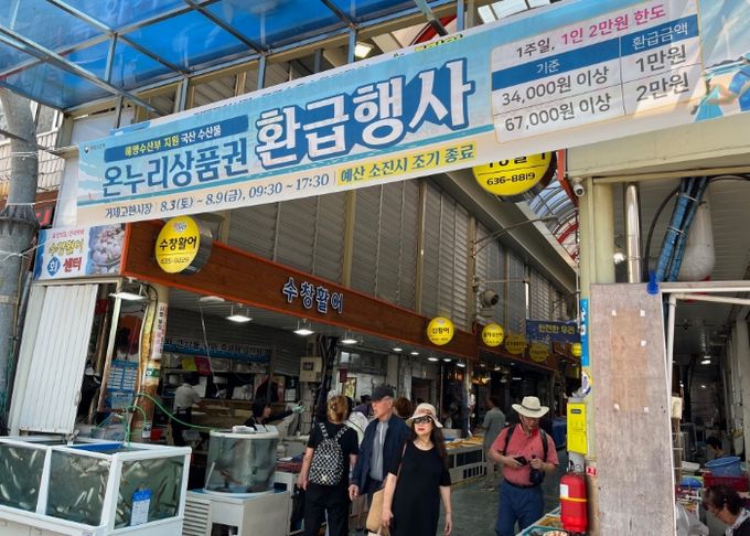 행사기간 동안 고현시장 내 국내산 수산물 취급업소에서 △3만 4천원 이상 ~ 6만 7천원 미만 구매 시 1만원, △6만 7천원 이상이면 2만원의 온누리 상품권으로 환급받을 수 있다. 환급 시 영수증과 신분증을 지참해 고현시장 상인회 사무실(거제중앙로 17길 6)에 제출하면 된다.