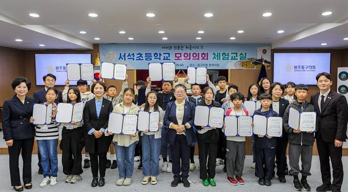 [경남도민뉴스=최현인 기자] 광주 동구의회는 지난 9일 동구의회 본회의장에서 '2025년 청소년 모의의회 체험교실'을 개최하여 서석초등학교 학생들과 특별한 시간을 가졌다