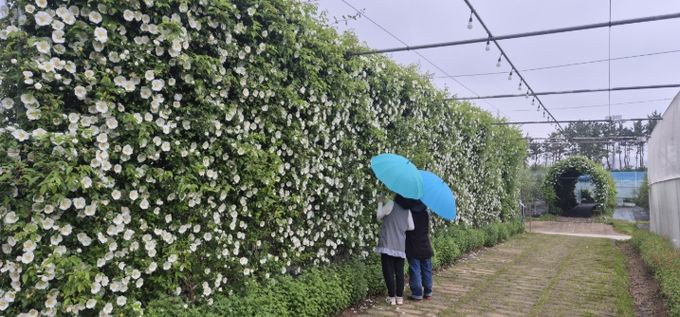 그렇게 조성된 3m 높이의 거제왕찔레 꽃벽울타리는 매년 5월 이맘때면 탐스러움의 극치로 관람객들의 눈과 맘을 사로잡는 새로운 관광자원이 되고 있다.