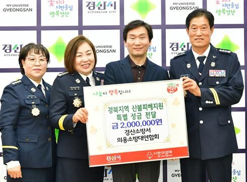 [경남도민뉴스=최민숙 기자] 경산소방서 의용소방대연합회는 16일 경산시청을 방문하여 경북 지역 산불 피해 이재민들을 돕기 위해 성금 200만원을 기탁하며 따뜻한 온정을 전했다.