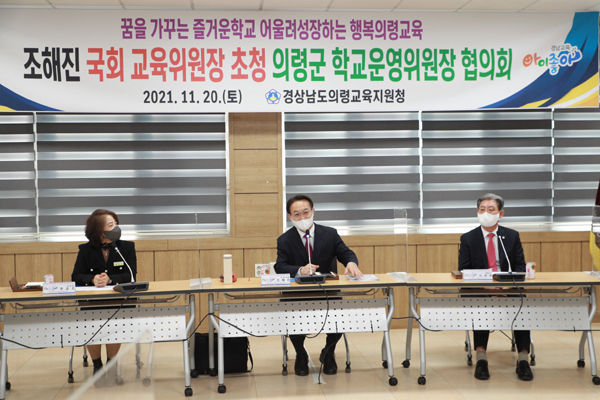 이날 행사를 주최한 한금조 교육장은 “교육현장의 숙원사업을 공유하고 함께 해결방안을 모색하는 뜻 깊은 자리가 되기를 바라며, 교육부 특별교부금으로 의령여자고등학교 특별교실 증축, 의령초등학교 본관동 외벽보수 공사 등 많은 예산을 확보하는데 노력을 해주신 조해진 국회 교육위원장께 감사의 인사를 드린다”고 말했다.