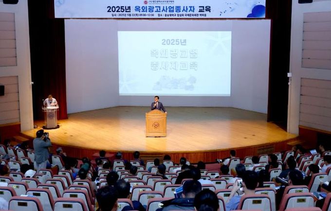이날 교육은 옥외광고사업 종사자를 대상으로 매년 실시되는 법정 교육으로, 5개구 500여 명의 등록업체 대표자 등이 참석해 관계 법규와 옥외광고물 디지인 설치·시공 현장 사례, 배상책임보험 의무가입 등 안전하고 올바른 광고문화 정착을 위해 마련됐다.
