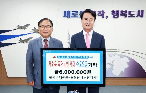 [경남도민뉴스=변정형 기자] 한국수자원공사 경남서부권지사(지사장 하필수)는 저소득 독거노인 150세대의 생활 안정을 돕기 위해 600만 원의 수도 요금을 기탁했다고 22일 밝혔다.