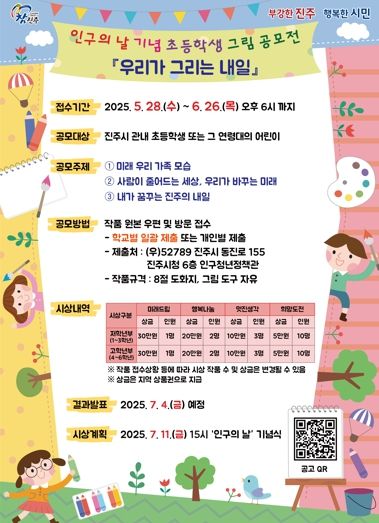 [경남도민뉴스=권중환 기자] 진주시는 제14회 인구의 날을 기념하여 관내 초등학생을 대상으로 그림 공모전'우리가 그리는 내일'을 개최한다.