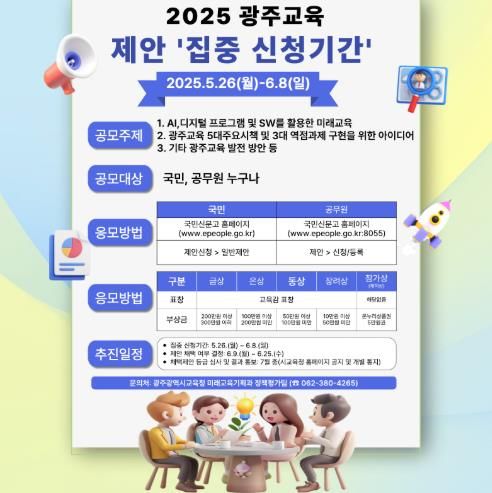 [경남도민뉴스=최현인 기자] 광주시교육청은 26일부터 6월 8일까지 ‘2025년 상반기 광주교육 제안 집중 신청기간’을 운영한다.