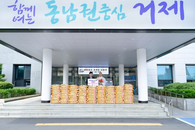 [경남도민뉴스=김부경 기자] 대한불교 조계종 신광사(주지 선안 스님)는 26일 거제시청을 방문해 지역 주민을 위한 백미 1,000kg을 기탁했다.