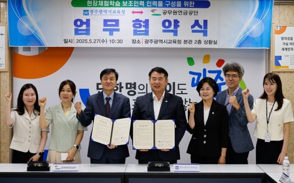 광주시교육청은 27일 상황실에서 공무원연금공단 광주·전북지부와 ‘현장체험 학습 보조인력 제공을 위한 업무협약’을 체결했다.