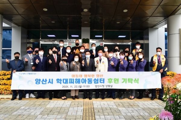 양산시는 22일 시청에서 김일권 시장, 김주은 시설장, 인애복지재단 조성철 이사장을 포함하여 기탁해 주신 기관·단체장 총 20명이 참석한 가운데 양산시 학대피해아동쉼터의 가전제품, 주방용품, 생필품, CCTV 등 물품 총 5천만원 상당의 후원 기탁식을 개최했다.