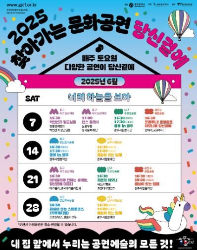 [경남도민뉴스=최현인 기자] 광주문화재단이 주관하는 ‘찾아가는 문화공연 '당신곁에' ’가 6월에는 “너의 하늘을 보아”라는 주제로 다양한 공연을 선보인다.