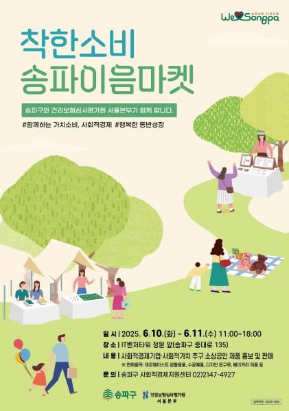 [경남도민뉴스= 기자] 서울 송파구는 오는 6월 10일부터 11일까지 양일간 사회적경제 플리마켓 ‘착한 소비, 송파이음마켓’을 개최한다.