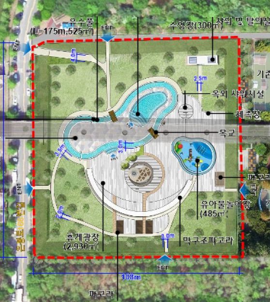 ‘남동 물빛놀이터’는 185m의 유수풀(601㎡, 수심 1.1m)과 수영장(300㎡, 수심 1.0m), 유아 물놀이장(503㎡, 수심 0.3m), 휴게 광장 등이 계획된 대규모 가족형 야외 물놀이장으로 7월 초 개장을 앞두고 있다.