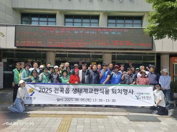 [경남도민뉴스= 기자] 연천군 전곡읍은 지난 5일 ‘세계 환경의 날’을 맞아 은대리성 일원에서 생태계교란식물 퇴치행사를 개최했다. 이날 행사는 오후 1시 30분부터 3시 30분까지 진행됐으며, 지역 직능·사회단체를 비롯한 주민과 전곡읍 직원 등 50여 명이 참여해 생태환경 보호 활동에 힘을 보탰다.