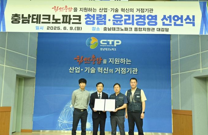 충남TP 서규석 원장은 “청렴과 윤리는 기관의 지속가능한 성장과 신뢰의 기반”이라며, “노사가 함께하는 윤리경영 실천을 통해 지역 혁신과 발전에 기여하겠다”고 말했다. 노동조합 대표 역시 “노사가 한마음으로 청렴 실천에 앞장서며, 투명하고 신뢰받는 조직문화 조성에 최선을 다하겠다”고 밝혔다