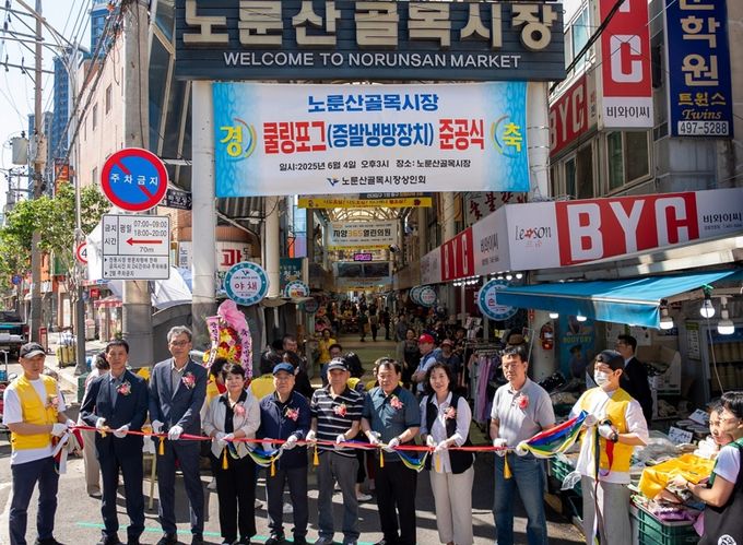 구는 올해 전통시장 시설 현대화 공모사업에 선정돼 총 4억여 원의 예산을 확보했다. 이후 3월부터 실시설계를 시작해 노룬산골목시장 약 120m 길이의 아케이드(아치형 비가림 지붕) 구간에 쿨링포그 설치를 완료했다. 지난 4일에는 준공식을 개최하고, 미세안개 분무노즐과 공기 순환용 팬이 결합된 시스템의 시운전도 마쳤다.