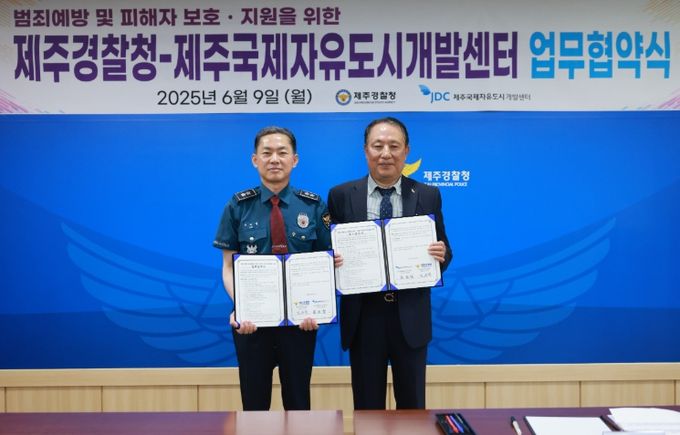 [경남도민뉴스=하형수 기자] 제주국제자유도시개발센터는 제주특별자치도경찰청과 6월 9일 도내 범죄 예방 및 피해자 보호·지원을 위한 업무협약을 체결했다.