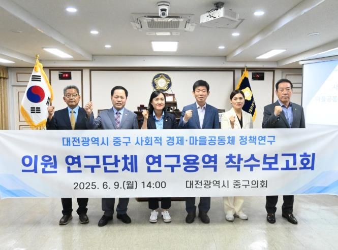 [경남도민뉴스=도문호 기자] 대전 중구의회 의원연구단체인 ‘대전광역시 중구 사회적경제·마을공동체 정책연구회’는 9일 중구의회 본회의장에서 ‘대전광역시 중구 사회적경제·마을공동체 정책연구 착수보고회’를 가졌다고 밝혔다.