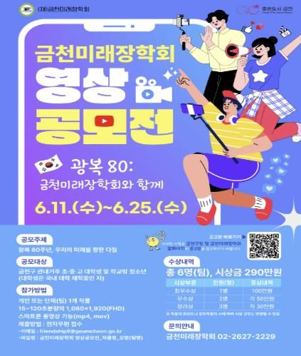 [경남도민뉴스= 기자] 금천구는 ‘광복 80주년, 우리의 미래를 향한 다짐’을 주제로 관내 청년과 청소년 대상 금천미래장학회 영상 공모전을 개최한다고 밝혔다.