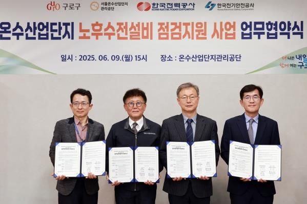 이날 협약식에는 장인홍 구로구청장을 비롯해 최은석 온수산업단지관리공단 이사장, 금동진 한국전력공사 구로금천지사장, 한재진 한국전기안전공사 서울서부지사장이 참석했다.