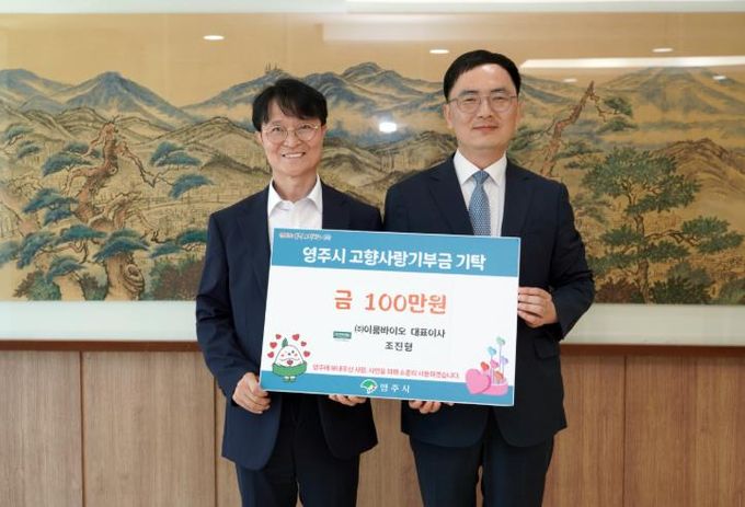 [경남도민뉴스=오창경 기자] ㈜이룸바이오 조진형 대표가 지난 6월 9일, 2년 연속으로 영주시에 고향사랑기부금 100만 원을 기탁했다.