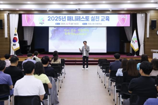 [경남도민뉴스= 기자] 의왕시는 9일 시청 대회의실에서 민선 8기 공약사업 담당자 등 공직자 100여명을 대상으로‘2025 매니페스토 실천 교육’을 실시했다.