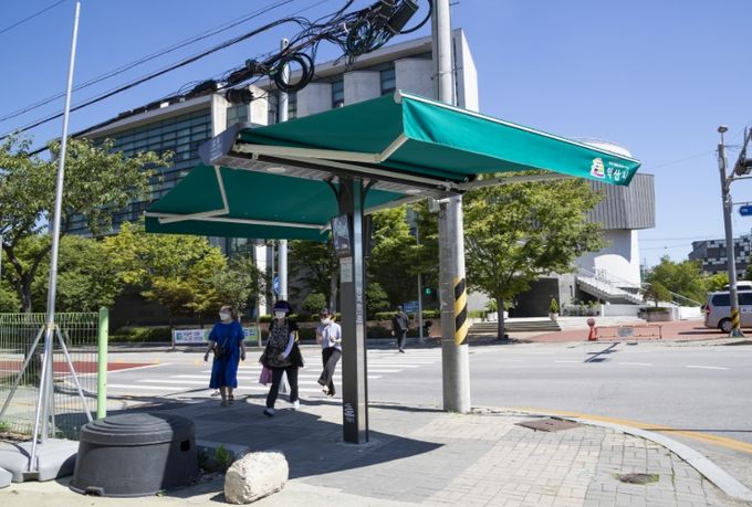 보행자가 많은 주요 사거리에는 스마트 그늘막 21개 포함해 총 173개의 그늘막이 가동에 들어갔다.