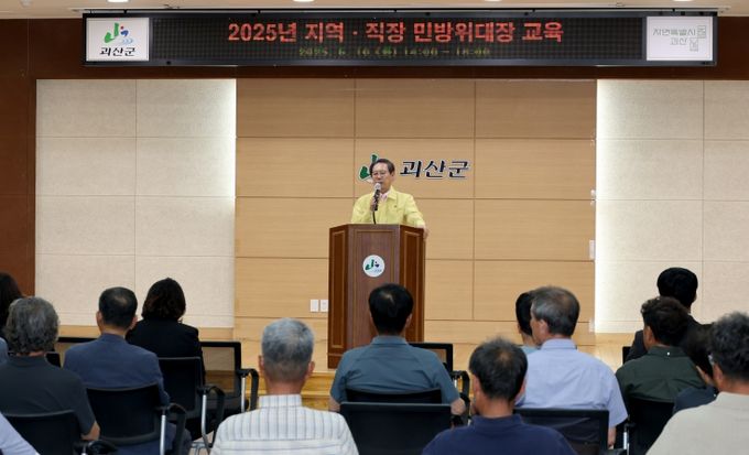 [경남도민뉴스= 기자] 충북 괴산군은 괴산군청 동관 3층 대회의실에서 지역 및 직장 민방위대장 77명을 대상으로 ‘2025년 민방위대장 교육’을 실시했다고 10일 밝혔다.