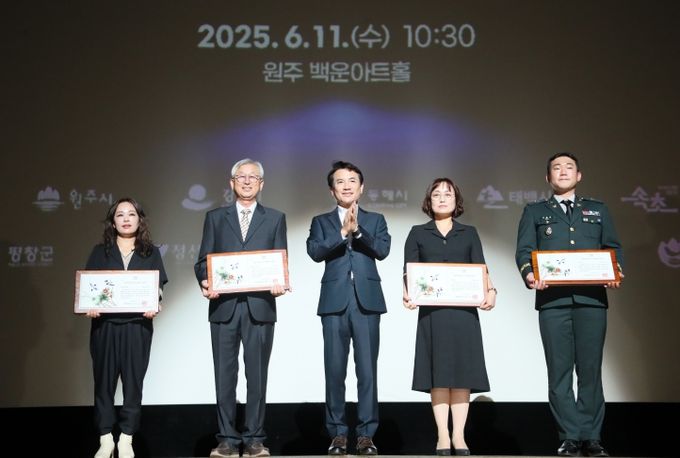 수상자는 봉사 부문에 홍천군 박헌규님(육군 2군단 3기갑여단 80전차대대 중사), 나눔 부문에 인제군 김홍옥님(육군 12보병사단, 주임원사), 가족사랑 부문에 양구군 윤연주님(미용업), 고향사랑 부문에 (사)울산강원특별자치도민회 심영내님((사)울산강원특별자치도민회 회장)이 선정됐다.