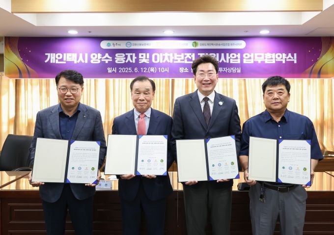 원강수 원주시장은 “이번 협약은 개인택시를 꿈꾸며 오랜 기간 성실하게 일해온 운수종사자들의 재정 부담을 덜고 자립 기반을 마련할 수 있는 좋은 제도”라며, “앞으로도 교통 복지 향상을 위한 다양한 정책을 발굴하겠다.”라고 전했다.