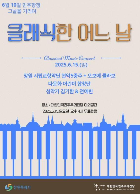 [경남도민뉴스=박민호 기자] 창원특례시는 오는 6월 15일 일요일 오후 4시, 대한민국민주주의전당에서 ‘클래식한 어느 날’ 음악회를 개최한다고 밝혔다.