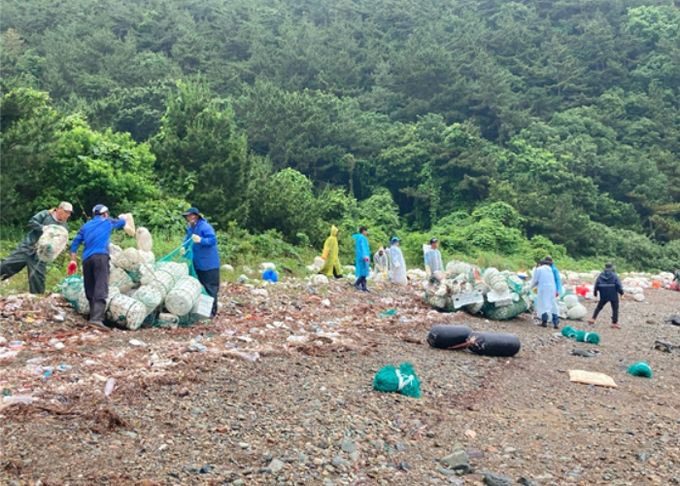 [경남도민뉴스=김태수 기자] 고성군은 6월 24일 삼산면 군령포 연안 일대, 도보로 접근이 힘든 해양쓰레기 관리 사각지대 해양쓰레기 저감을 위해 어촌계 정화활동을 실시했다고 밝혔다.