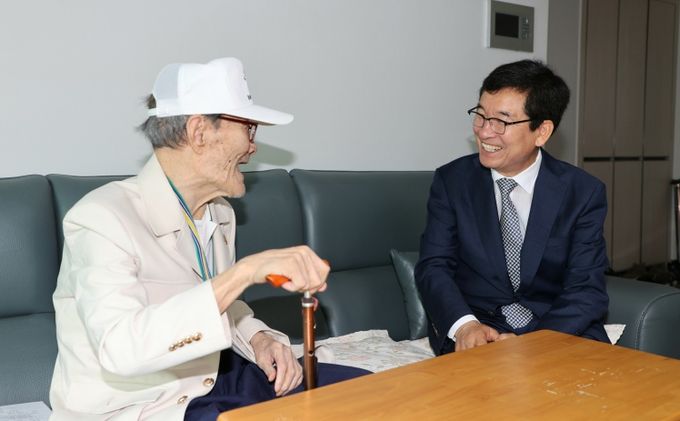 이날, 윤건영 교육감은 현재 거동이 불편한 유공자를 방문해 손을 맞잡고 참전용사의 희생에 대한 감사한 마음과 함께 위문품을 전달했다.