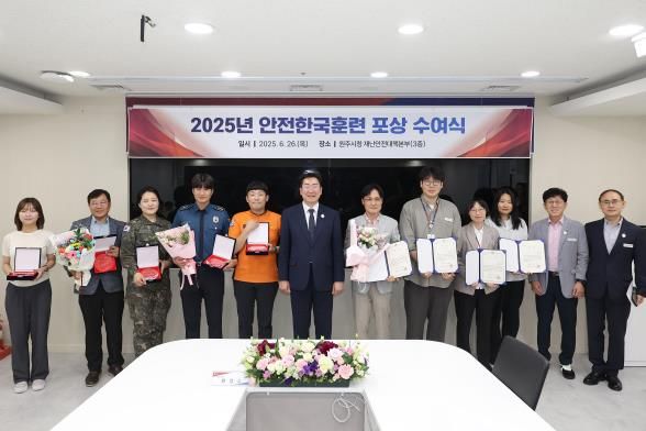 시는 올해 안전한국훈련 과정에서 적극적으로 해결 방안을 제시하고 지원한 원주시 4개 부서와 원주소방서, 원주경찰서, 제36보병사단, 원주지방환경청, 환경에너지솔루션에 원주시 포상(감사패 및 상장)을 수여했다.