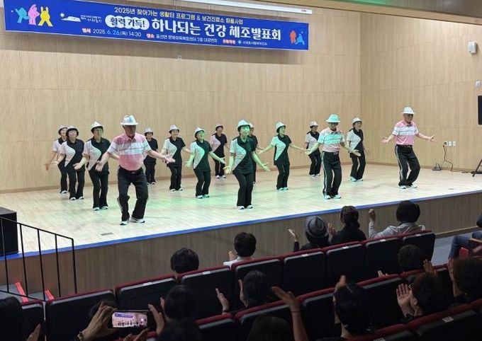 [경남도민뉴스=하형수 기자] 서귀포시 동부보건소는 26일 표선면 문화체육복합센터 2층 대공연장에서 지역주민 300여 명이 참여한 가운데 ‘활력 가득! 하나되는 건강체조 발표회’를 성황리에 개최했다.