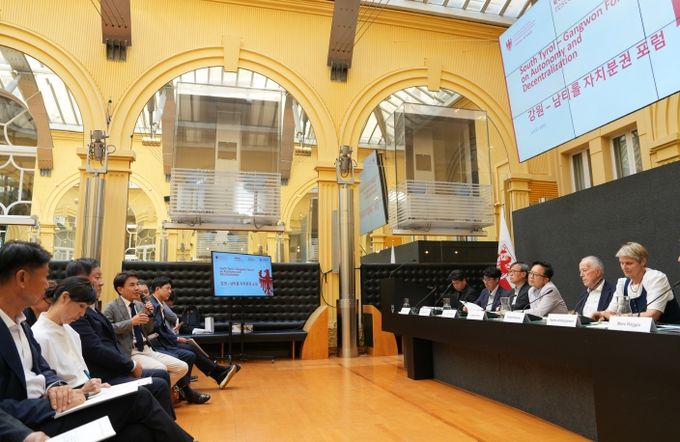 [경남도민뉴스=류종길 기자] 강원특별자치도는 7월 1일, 이탈리아 남티롤에서 자치분권과 환경규제에 관한 논의를 위한 '강원-남티롤 자치분권 포럼'을 개최했다.