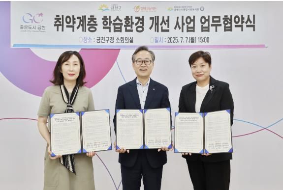 [경남도민뉴스=류종길 기자] 금천구는 관내 취약계층 아동의 학습환경 개선을 위해 사회복지법인 열매나눔재단, 금천누리종합사회복지관과 7일 협약을 체결했다고 밝혔다.
