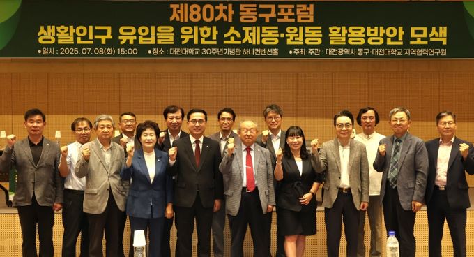 박희조 동구청장은 “이번 포럼은 지방소멸 위기 속에서 대전역과 중앙시장 등 핵심 인프라와 소제동·원동의 고유한 지역 자산을 활용해, 생활인구 유입과 지역 경제 활성화를 모색하는 뜻깊은 자리였다”며 “앞으로도 민‧관‧학이 함께 머리를 맞대고 지속 가능한 동구의 미래 전략을 고민해 나가겠다.”
