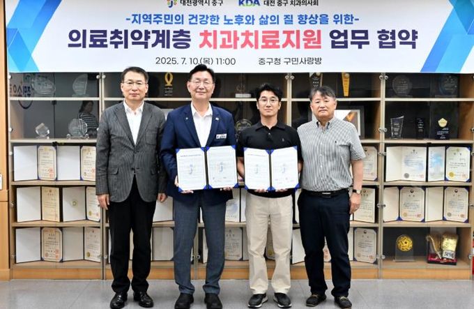 [경남도민뉴스=도문호 기자] 대전 중구는 10일 대전 중구 치과의사회와 의료취약계층의 치과치료 지원을 위한 업무협약을 체결했다고 밝혔다.