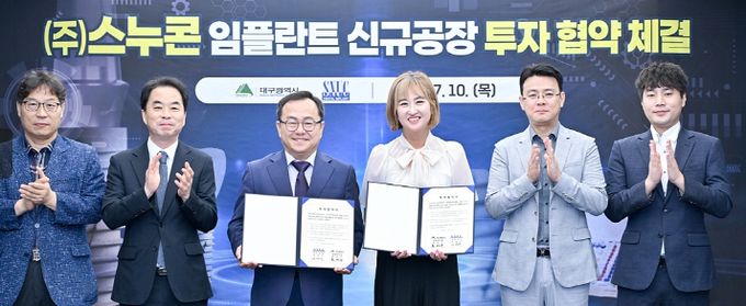 [경남도민뉴스=백상현 기자] 대구광역시는 7월 10일 대구광역시청 산격청사에서 임플란트 글로벌 강소기업인 ㈜스누콘(대표 박영우)과 치과용 임플란트 신규공장 2개소 건립을 위한 투자협약을 체결했다.