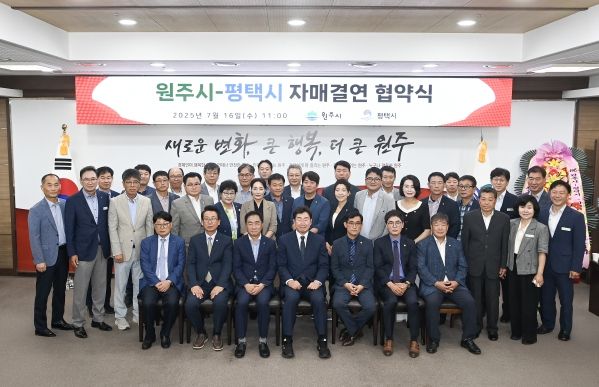 [경남도민뉴스=류종길 기자] 원주시는 16일 오전 11시 시청 10층 대회의실에서 평택시와 자매결연 업무협약을 체결했다.