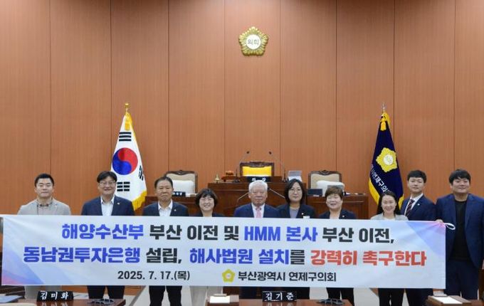 연제구의회는 결의안을 통해 △해양수산부의 조속한 부산 이전 △HMM 본사의 부산 이전 △동남권 투자은행의 설립 △해사법원의 부산 설치 등 네 가지 핵심 사항을 정부와 관계기관에 강력히 촉구했다.