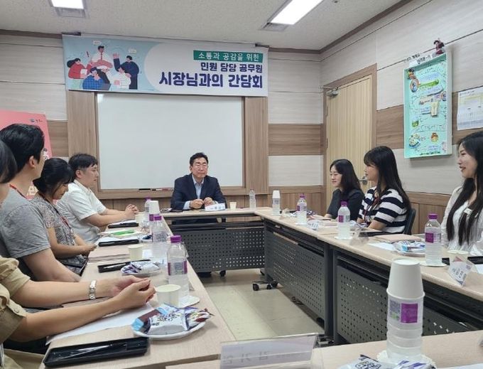 원강수 시장은 간담회를 통해 민원담당공무원의 애로사항을 청취하고, 민원 현안에 관한 논의를 진행했다.