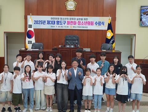[경남도민뉴스=신석주 기자] 부산광역시 영도구의회는 지난 7월 26일 ‘제3대 영도구 어린이·청소년의회’ 수료식을 개최했다고 밝혔다.