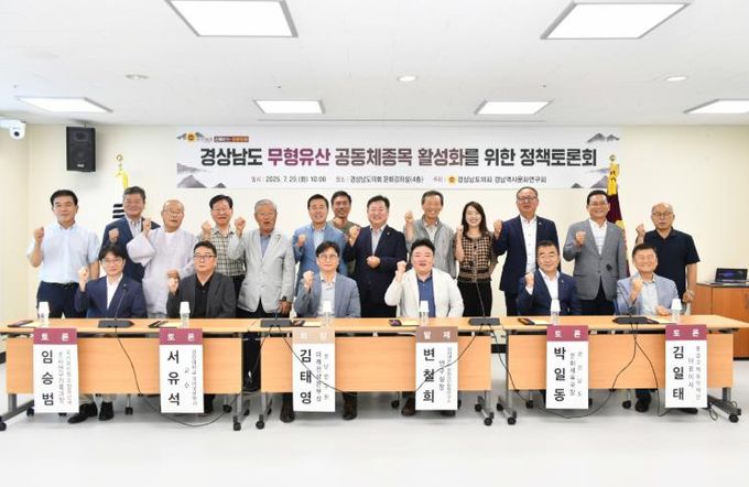 [경남도민뉴스=구인애 기자] 2025년 7월 29일, 경상남도의회 의원 연구단체인 경남역사문화연구회는 ‘경상남도 무형유산 공동체종목 활성화 방안 정책 연구 용역’최종보고서를 바탕으로, 경상남도의 무형유산 공동체종목의 가치 재조명과 실질적 활성화 방안을 모색하기 위한 정책토론회를 성황리에 개최했다.