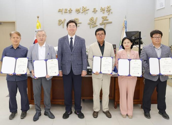 [경남도민뉴스=류종길 기자] 원주시는 지난 28일 시장 집무실에서 올해 6월로 임기가 만료된 강원특별자치도 원주시 자문단 위원 6명을 전원 재위촉하고, 위촉장 수여식을 개최했다.