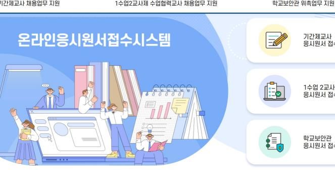 센터는 지난해부터 기간제교사 및 1수업 2교사제 수업협력교사 채용 지원을 위해 온라인 응시원서접수시스템을 운영해 왔으며, 올해 학교보안관 분야까지 활용 범위를 넓혔다.