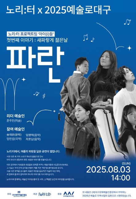 [경남도민뉴스=백상현 기자] 대구문화예술진흥원은 ‘2025 예술인파견지원사업–예술로 대구’의 일환으로 8월 3일 오후 2시, 복합문화공간 ‘노리:터’에서 프로젝트 공연 ‘파란’을 개최한다고 밝혔다.