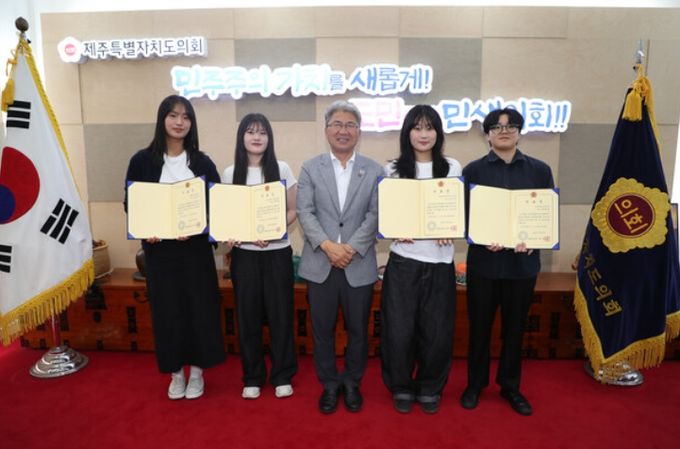 제주특별자치도의회는 도내 대학생의 지방자치 및 의정활동에 대한 인식 제고와 의정지원 업무 경험 기회 제공을 위해 지난 7월 1일부터 31일까지 1개월 간‘2025년 하반기 대학생 의정활동 체험 인턴제’를 운영했다.