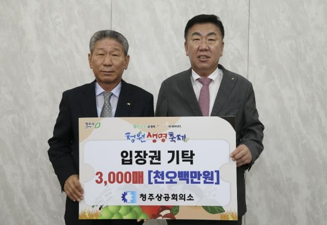[경남도민뉴스=박만수 기자] 청주상공회의소는 4일 청주시청을 방문해 2025 청원생명축제에 소외된 이웃들이 함께할 수 있도록 입장권 3,000매(1,500만원 상당)를 청주시에 기탁했다.