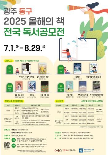 [경남도민뉴스=최현인 기자] 광주 동구는 책과 함께 소통하며 행복한 인문도시를 조성하고자 2025 ‘올해의 책’ 전국 독서공모전을 개최한다고 밝혔다.